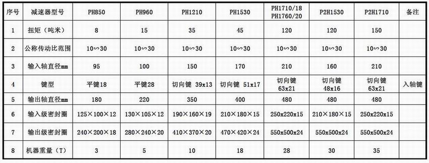 平行軸硬齒面齒輪減速器技術(shù)參數表